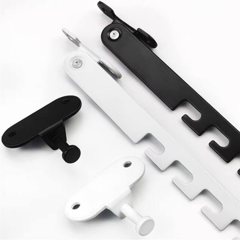 Our window restrictors are adjustable and can protect children while meeting the function of ventilation. Press and hold the slider button on the pole to push or pull the window, achieving the adjustment of the openging size for windows.