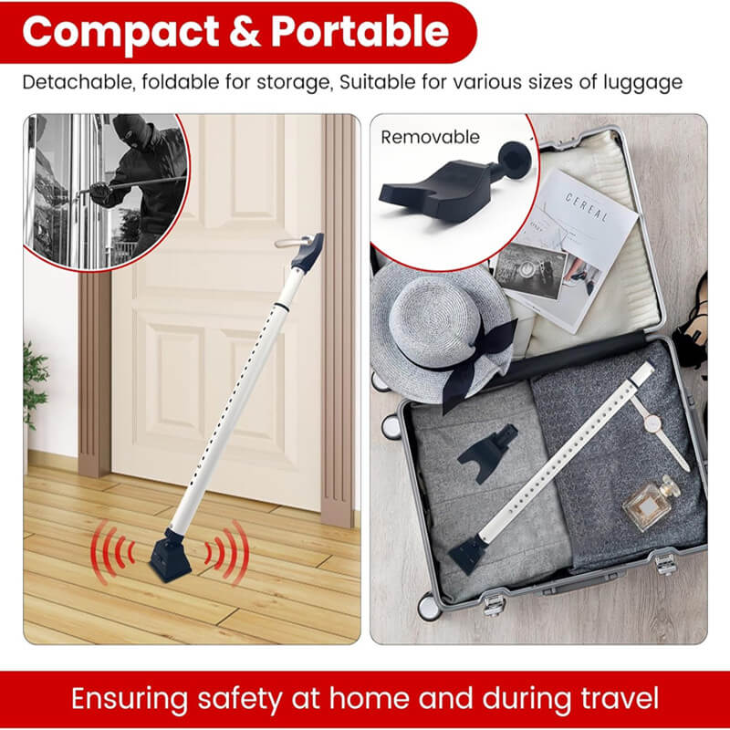 Our alarm door security bar with loud 120db alarm, if someone tries to tamper with doors or Windows, etc., it will send out an alarm up to 1000ft away, ensuring you and your family are safe and can sleep better at night. The alarm will be issued when the force is more than 66 pounds.