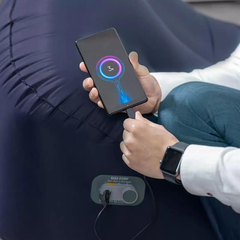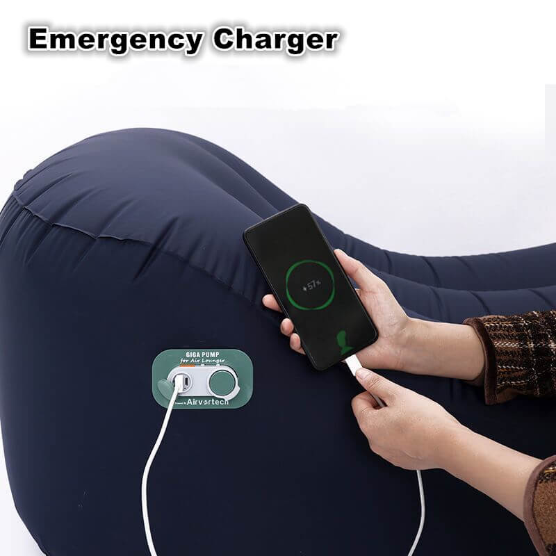 The automatic air pump can also be your emergent phone charger. Flextailgear portable lounger can be the power bank for cell phones, wireless earbuds, smartwatches, and other USB-powered devices. With the separate USB-A outport on outdoor emergency, getting out of touch is not gonna happen.
