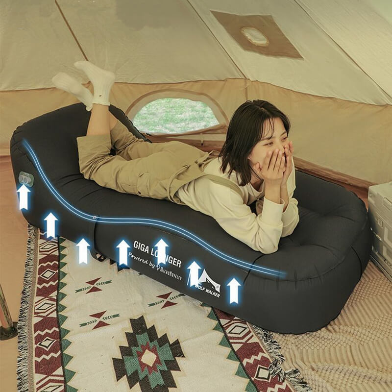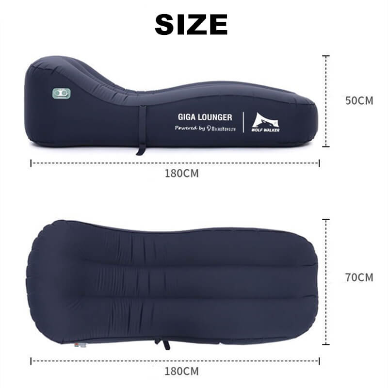 The curved design provides excellent neck and back support and evenly supports the body which achieves a more comfortable effect, you will not feel trapped or hard to move. The spacious volume allows you to rest freely in various positions on the inflatable couch.
