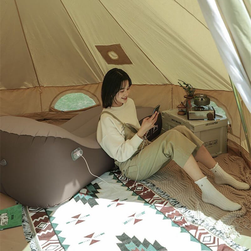 Convenient and labor-saving, the sofa comes with a lithium battery inflatable pump. It can be inflated 20 times. Distinguished from the traditional running inflatable sofa,only needs to turn on the air pump, can be completed within a minute of inflation. No need for extra running.