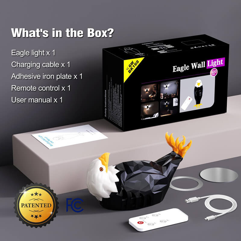 This bald eagle wall lamp seamlessly enhances any room's decor. Use it as a gentle night light in the bedroom, a striking centerpiece in the living room, or a unique addition to the office. Its multifunctional design adapts effortlessly to your needs, making it a versatile choice for any setting.