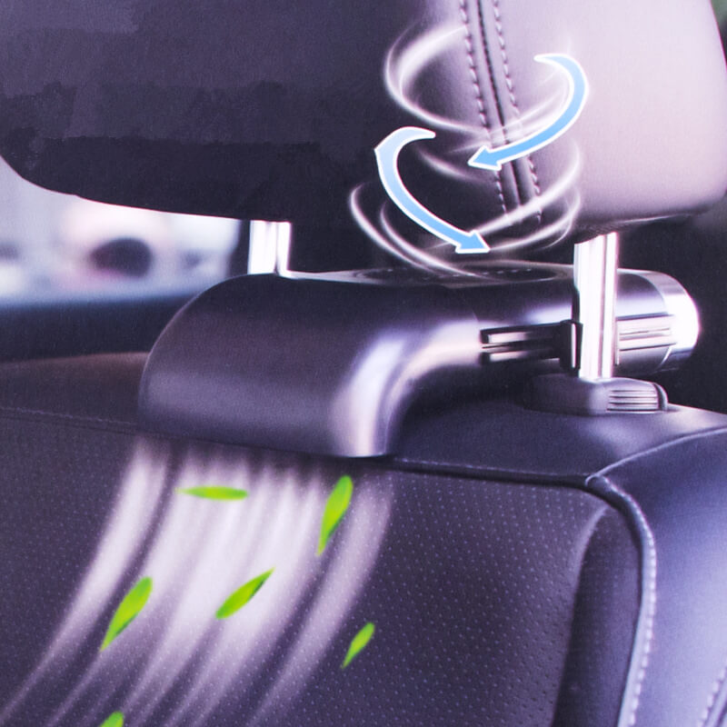 Portable car seat cooling fan made of ABS material featuring in environmental and sturdy, The design of the air outlet without fan blades can be operated safely and the wind direction can be switched up and down, and it will not cause hair and other small objects to be entangled or children's fingers get injured.