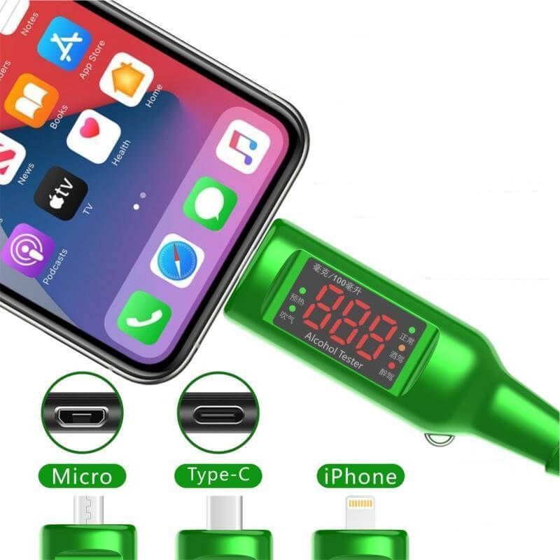 Our alcohol tester need to be used with a mobile phone, which means it is small and convenient, you just need to plug it into the charging port of the mobile phone, it will automatically start, and then you can test.