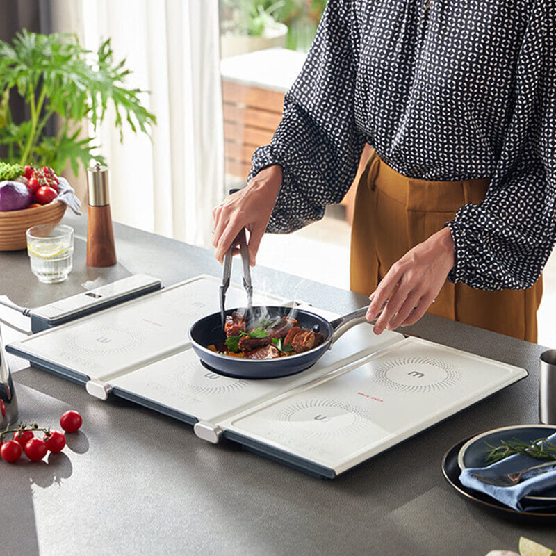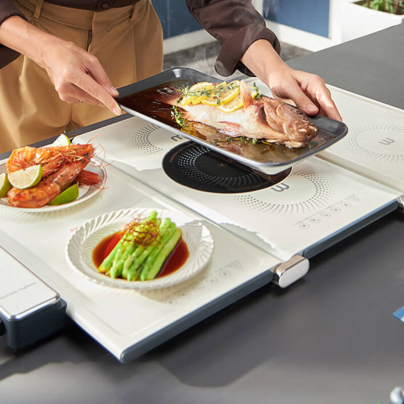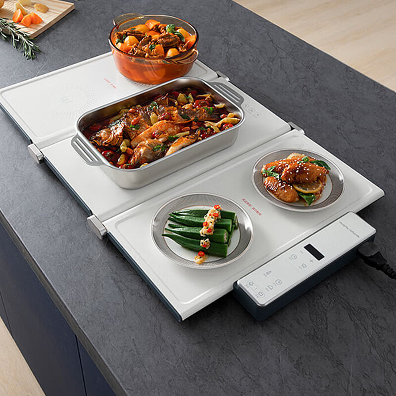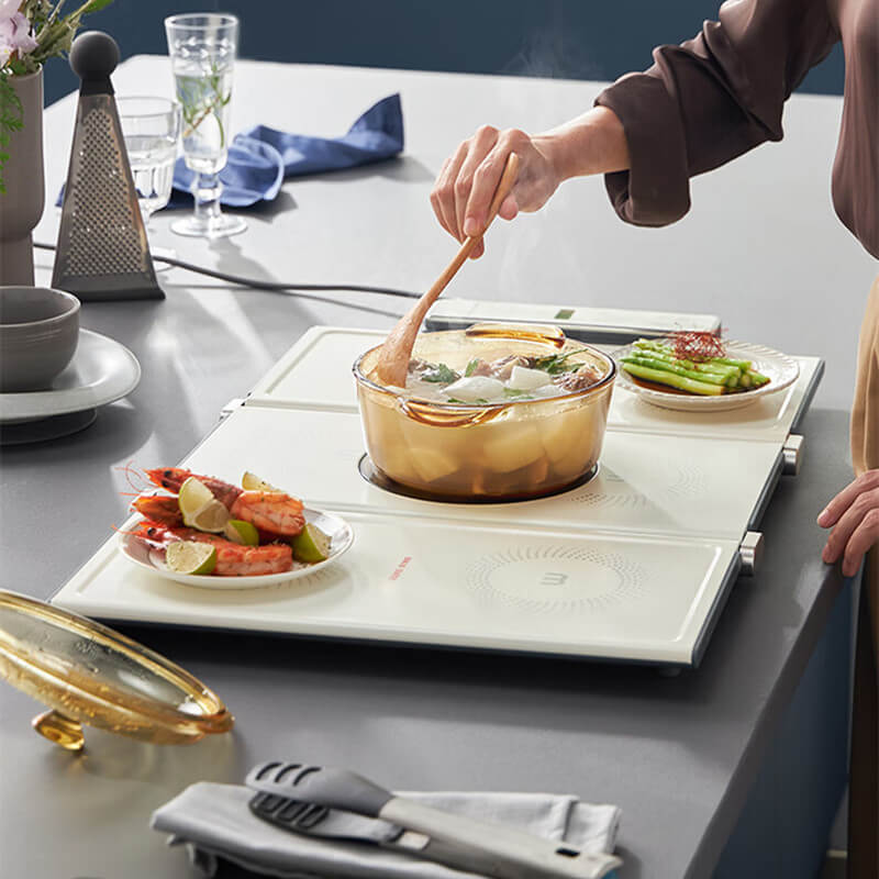 Our folding cooking warming plate has a built-in high-heat poly-energy ring that can heat up extremely fast in one second, it has seven levels of heat adjustment and supports timer function. Enjoy delicious food anywhere in your home.