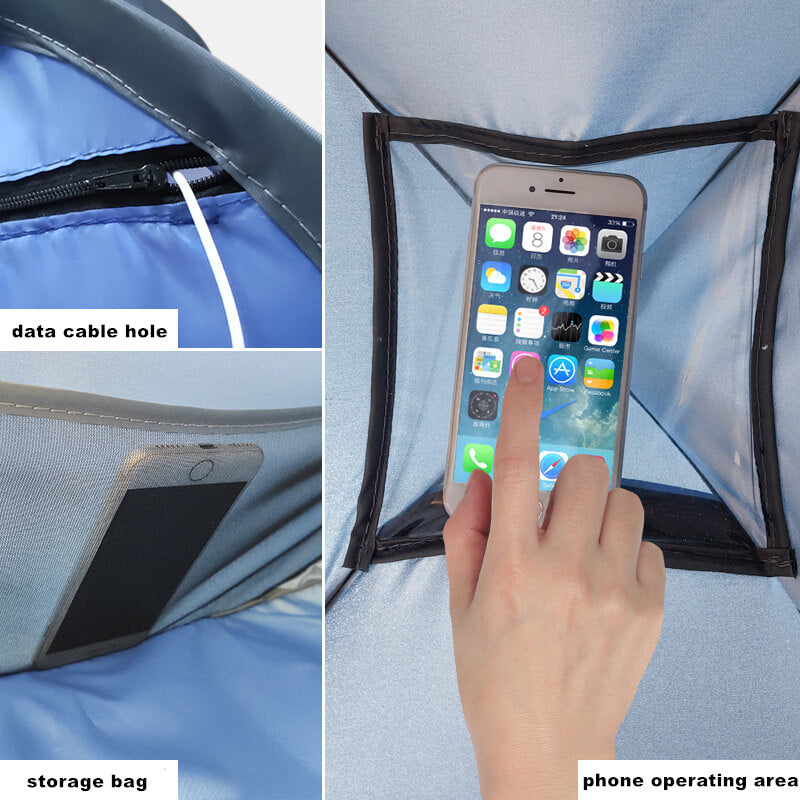 Opens up full-automatic in 2 seconds,no assembly required.With the zip pocket on the top you can use your touchscreen smartphone comfortably. Side mesh pocket for storing small items.