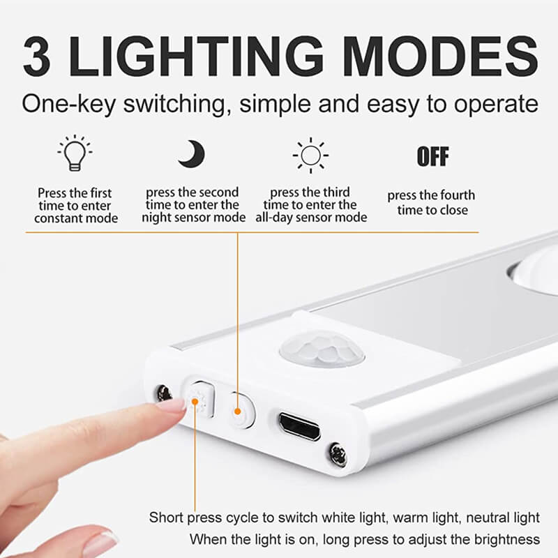 Under counter closet light strip has three-tone dimming + stepless brightness adjustment + multiple sensing modes, powerful function.