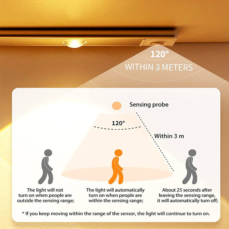 The led lights has an automatic motion sensor, the light will be on when people come, and if it has been within the sensing range, the light will be on all the time.