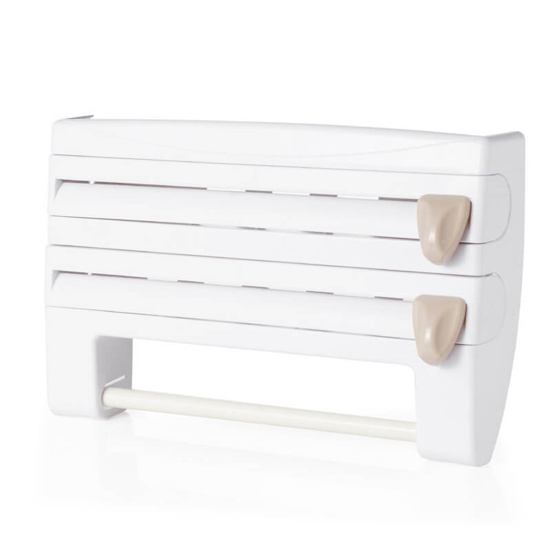 This wall mount cling film holder is very suitable for storing paper towels, plastic wrap, aluminum foil, garbage bags and some spice.