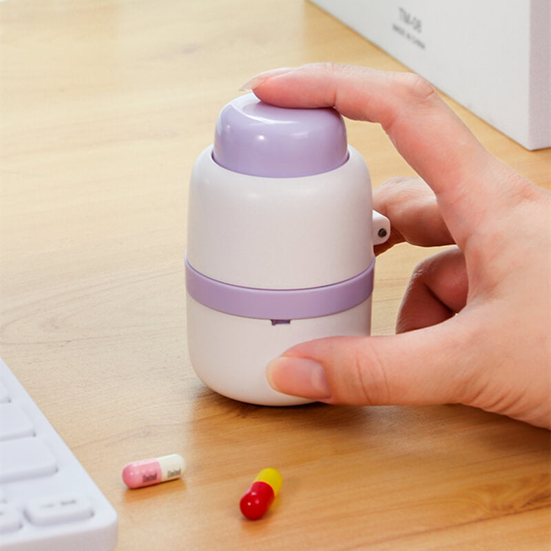 Put the tablet in the middle position, rotate the outer ring to fix the position, close the lid and press. The tablet cutter can easily cut into 1/2 or 1/4 perfectly. When cutting some very large and hard pills, hold the side ring tightly otherwise some breakage and powder will appear.