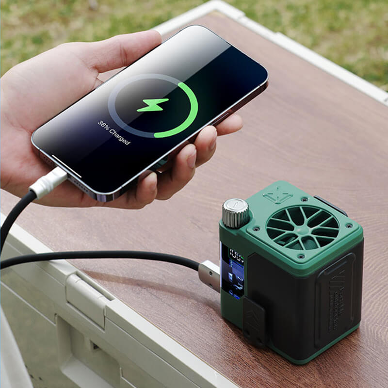 Our portable waist fan has a built-in 10,000mAh battery that delivers 100 speeds of infinite wind, and it stays charged for up to 3 days, so it can be used as a rechargeable battery for emergencies.