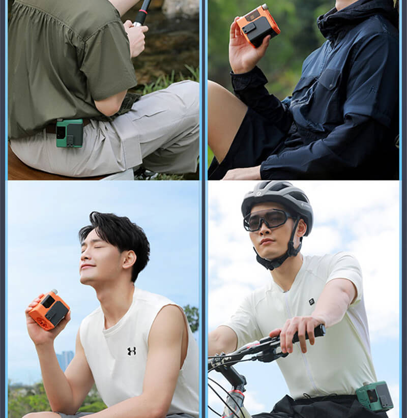 This portable waist fan can be hung on the waist, can be hand-held, drop-proof and sweat-proof, compact size, does not take up space, can meet the needs of working people in different high-temperature environments.