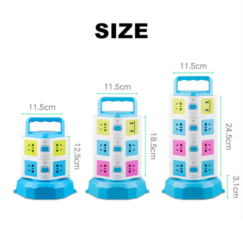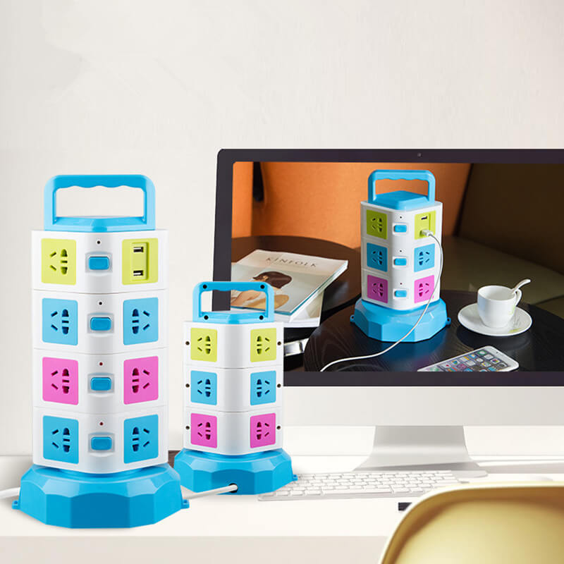 This power strip extension cord tower is built-in surge protection, the charger tower will automatically cut the power off to protect your electronic devices when the voltage surge is detected. This outlet tower is made of fireproof ABS and PC material, with overload protection, surge protection, over current protection and on/off power switch on each layers for safe guarantee.