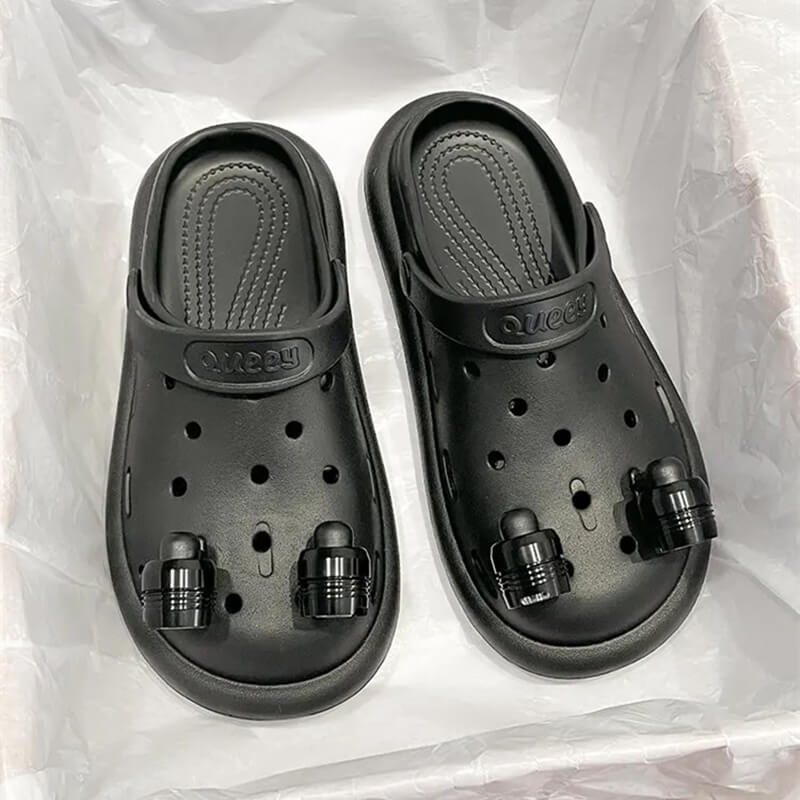 This slipper is made of high-quality EVA, light weight, soft and comfortable, the outsole is about 2.5cm, not bulky walking without burden, but also show fashionable and beautiful atmosphere.