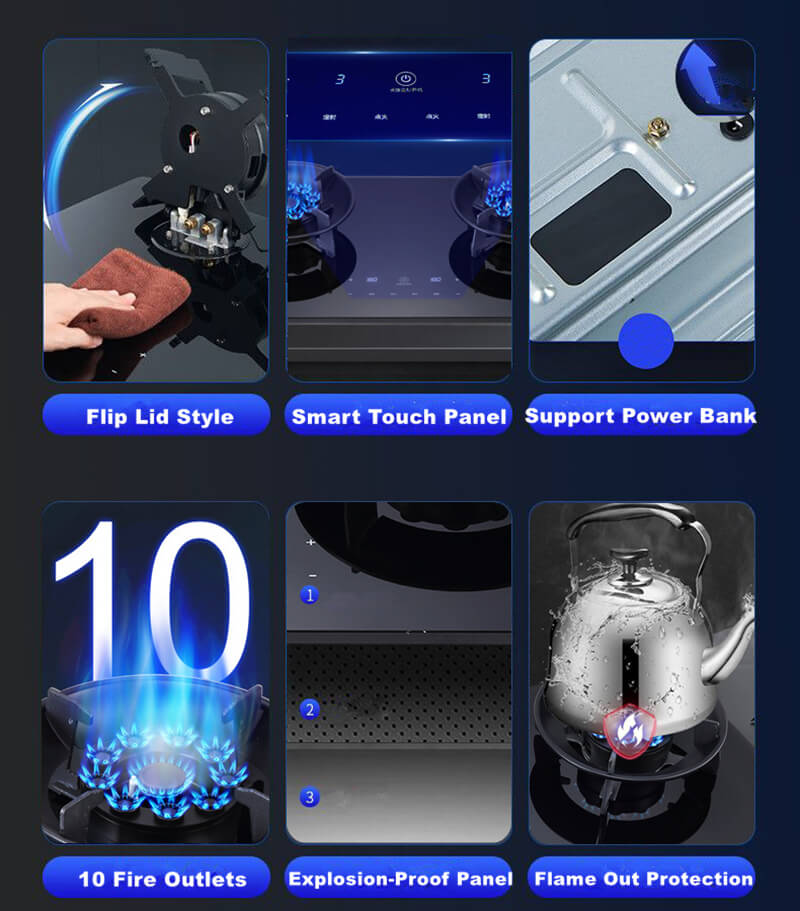 Our smart gas stove with flip-up design, gas stove panel simple, will not hide dirt, very easy to clean, a wipe with a cloth can be clean as new.