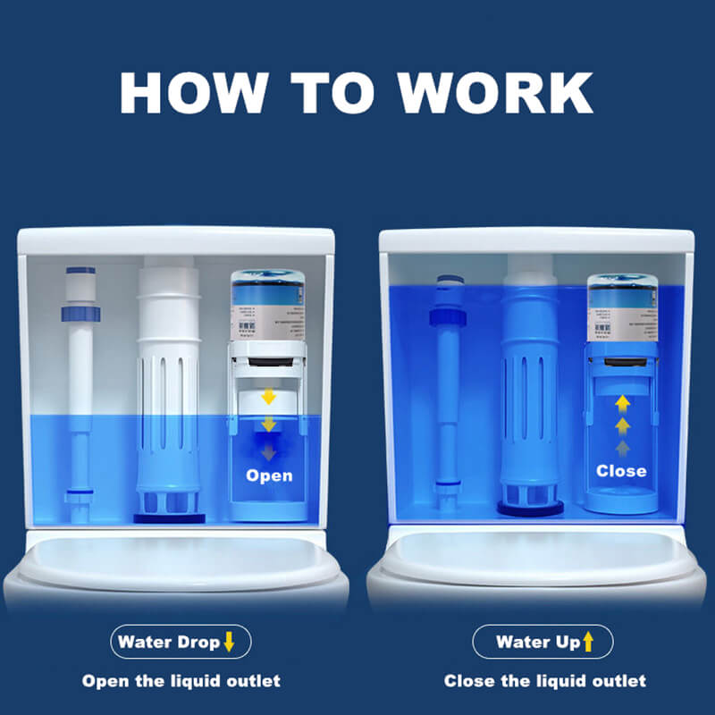 Our cleaner dispenser is suitable for a variety of toilet bowl with tank, and can be placed in a variety of places, such as public places such as homes, hospitals, hotels, restaurants, etc.
